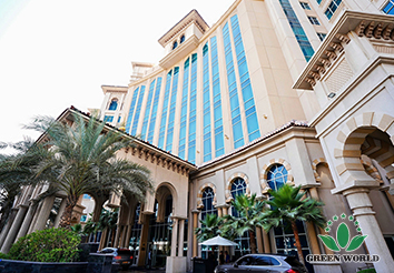 At the arrival hall of Dubai International Airport, Green World International Group reception team stood ready to welcome delegations all around the world. The airport pick-up signs featuring the Group’s logo, welcome gifts with red box and the green scarves printed with “GREEN WORLD” and “HGW”, as well as the warm smiles and greetings made all arriving Green World family members from afar feel the warmth and care from the Group the moment they landed.