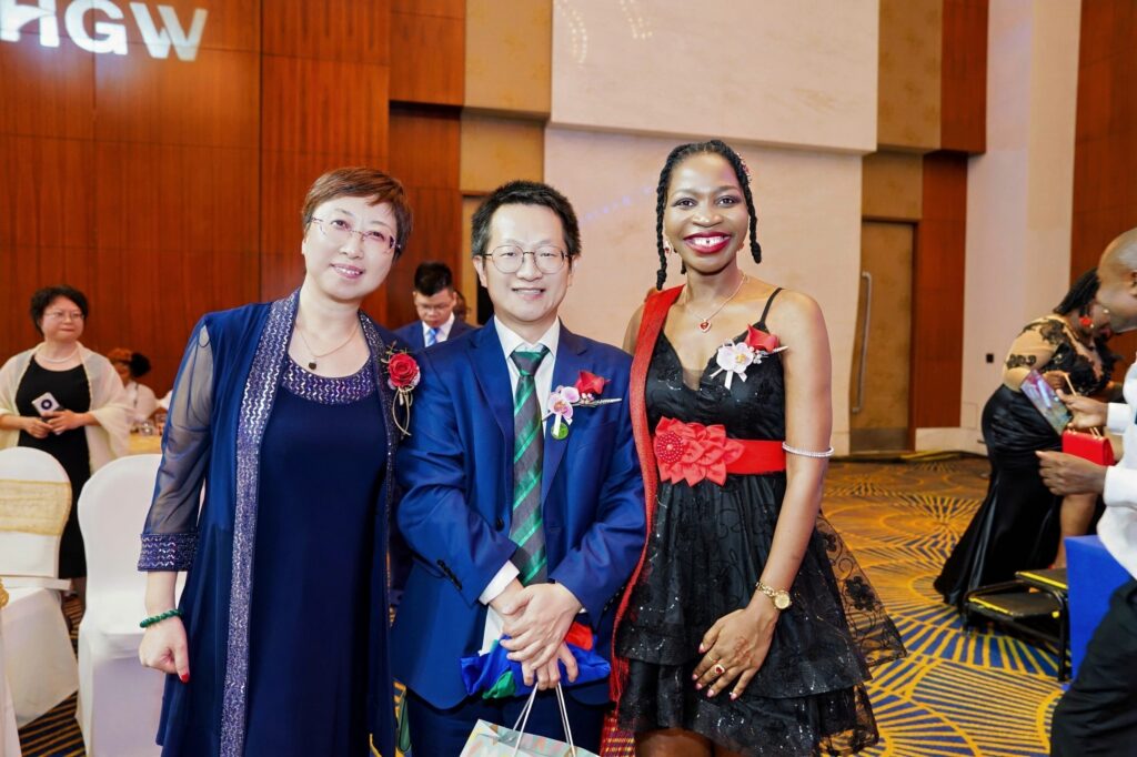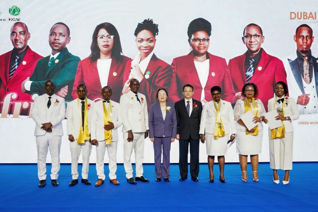 Mr. David L. Zhang, Vice President of Green World International Group and President of Green World Africa Region, Mr. Peter Li, Vice President of Green World International Group and President of Green World Latin America Region, Mr. Isaac Ren, General Manager of Green World Uganda Branch, Mr. Peter Liu, General Manager of Green World Zambia Branch, Mr. Bruce Huang, General Manager of Green World Cape Town Branch and West Africa Francophone Region, Mr. Glory Guo, General Manager of Green World Johannesburg Branch, Mr. Budiman, Director of Education and Training Department of Africa Region, Ms. Ying Liang, General Manager of Green World Canada Branch, as well as the reception team lined up at the arrival hall. They presented green scarves and the bouquet. Prof. Deming Li warmly greeted to everyone. The atmosphere was full of warmth, delight and appreciation.